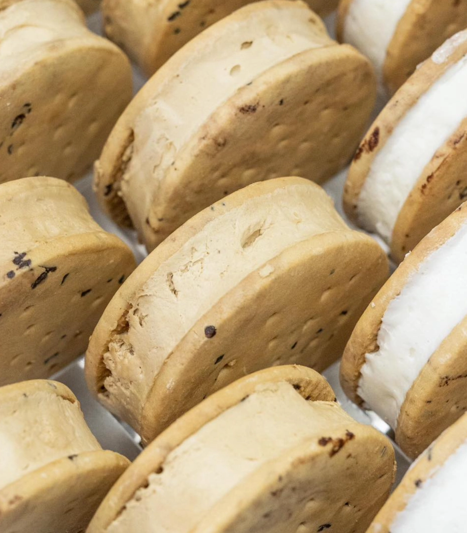 Biscotti farciti con gelato cremoso: il perfetto equilibrio tra dolcezza, freschezza e croccantezza. Uno snack goloso da gustare ovunque.